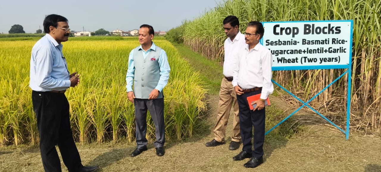 Pantnagar. September 22, 2025. At Govind Ballabh Pant University of Agriculture and Technology, Pantnagar, an All-India Network Programme on Natural Farming is being implemented under a project funded by the Indian Council of Agricultural Research – Indian Institute of Farming Systems Research, Modipuram. The project has continued at the University since 2004-05. Under the project, an integrated organic farming model on one acre of land has been developed, which combines dairy, fishery, sugarcane-based cropping and vegetable production through organic methods. The objective is to provide small farmers with year-round employment and new avenues for income. Today, Vice Chancellor Dr. Manmohan Singh Chauhan visited the Dr. Norman E. Borlaug Crop Research Centre. Project Officer Dr. D.K. Singh informed that this model has the potential to generate an annual income of Rs. 2.5 to 3 lakh from just one acre of land. The Vice-Chancellor appreciated this initiative and suggested the inclusion of poultry and goat farming in the model.