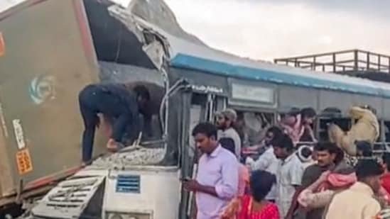 Another visual shows people surrounding the bus and guiding a JCB excavator machine, which is seen dismantling sides of the bus to pull out passengers still trapped under the gravel load. According to the police, the collision was so intense that the lorry’s gravel load fell onto the bus, trapping several passengers underneath.