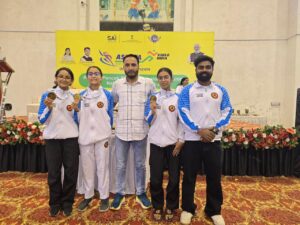 A seven-member team from Uttarakhand represented the state and delivered an outstanding performance. In the Pre-Teen Artistic Team Regu event, Mishita Rao, Nandini Deo, and Aradhya Chauhan demonstrated exceptional skill and secured the gold medal, bringing pride to the state.